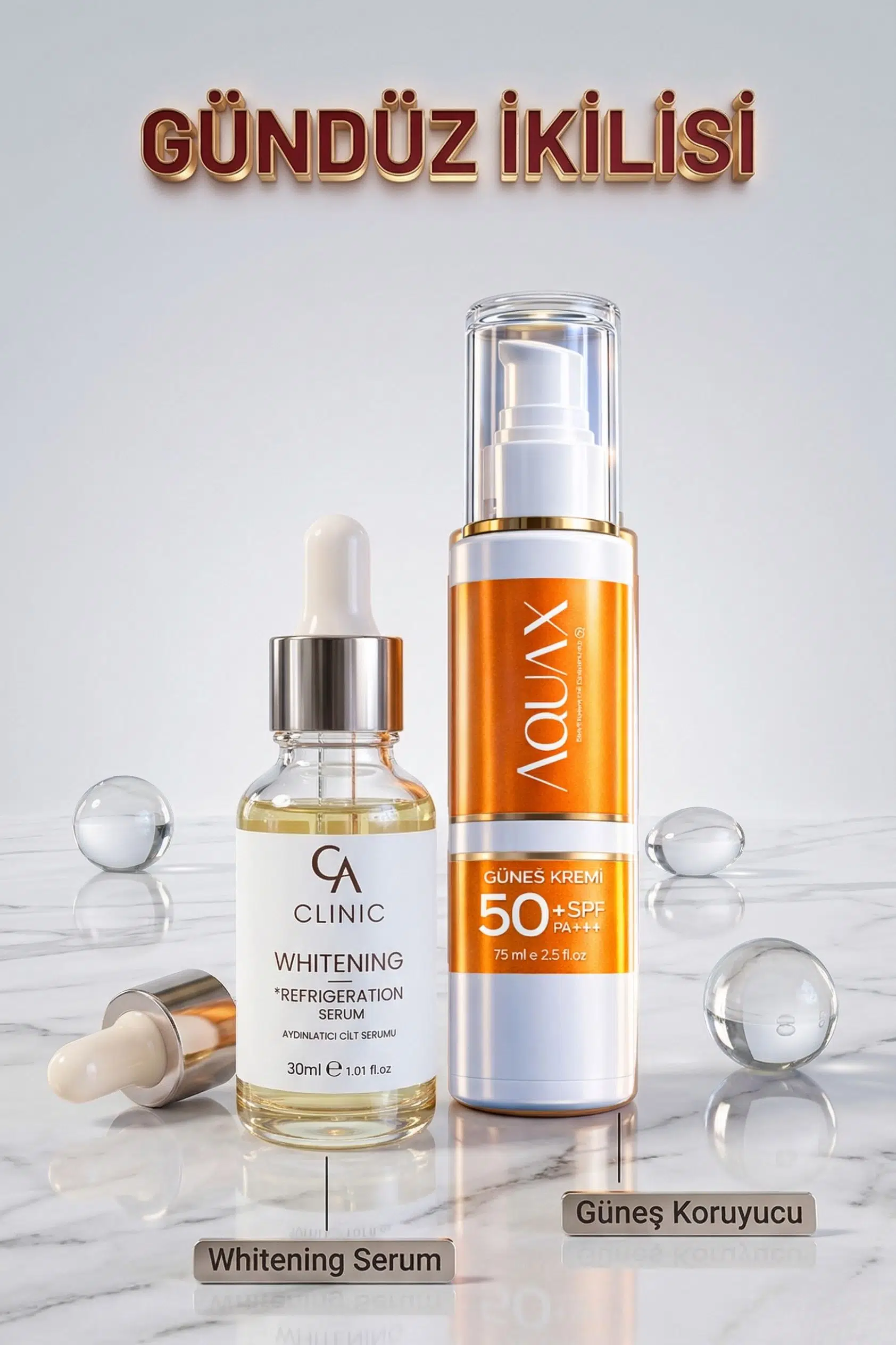 Cilt lekelerinden şikayetçi misiniz ve cildinizi güneşten korurken aynı zamanda aydınlatmak mı istiyorsunuz? Etkili bir sabah rutini için özel olarak hazırlanan Gündüz İkilisi Gündüz Bakım Seti tam size göre. Aydınlatıcı cilt serumu (Whitening Serum) ile cilt tonu eşitsizliklerini hedeflerken, üzerine uygulayacağınız 50 faktör güneş kremi (SPF 50+ PA+++) ile leke oluşumunu durdurun. Sağlıklı, parlak ve yaşlanma belirtilerine karşı koruma altındaki bir cilt için günlük bakımınızı şansa bırakmayın.